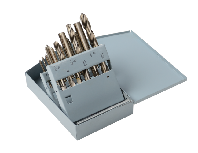 18pc Drill Bit And Tap UNC SetHigh speed steel construction. Rugged metal indexed case.